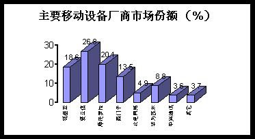 (3)市場趨勢及預(yù)測: 2001年移動網(wǎng)絡(luò)設(shè)備市場預(yù)計總體保持快速增長,在GSM領(lǐng)域,中國移動25城市GPRS實驗網(wǎng)的開通,對移動互聯(lián)將是實質(zhì)性的推動,WAP熱炒冷賣的局面會有所改變。各大設(shè)備廠商受此影響將沉浮巨大,愛立信、諾基亞、摩托羅拉、華為技術(shù)等公司將順勢擴大市場份額,市場集中度進一步提高。