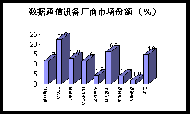 。1)市場規(guī)模: 年初各大運營商IP實驗網(wǎng)的開通以及聯(lián)通覆蓋300余城市的IP網(wǎng)絡(luò)大規(guī)模建設(shè),年中ChinaNet大提速與3期擴容項目實施以及CNCnet開通,年末CMnet骨干網(wǎng)一期工程上馬、2000年中國數(shù)據(jù)通信設(shè)備市場可謂是熱點頻仍。根據(jù)Frost&Sullivan分析,年內(nèi)網(wǎng)絡(luò)交換機、訪問產(chǎn)品、 路由器、集線器等數(shù)據(jù)通信主要設(shè)備市場規(guī)模達到96億人民幣,同比增長36%,數(shù)據(jù)通信設(shè)備市場再次進入高速增長期。
